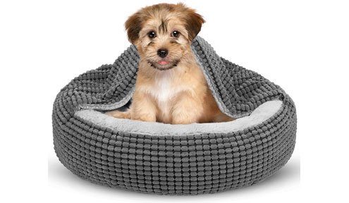 Our top choice is the Bedsure Dog Bed for Small Dogs, which features a round design with ample padding throughout. It is specifically made to give pets a safe and protected feeling.